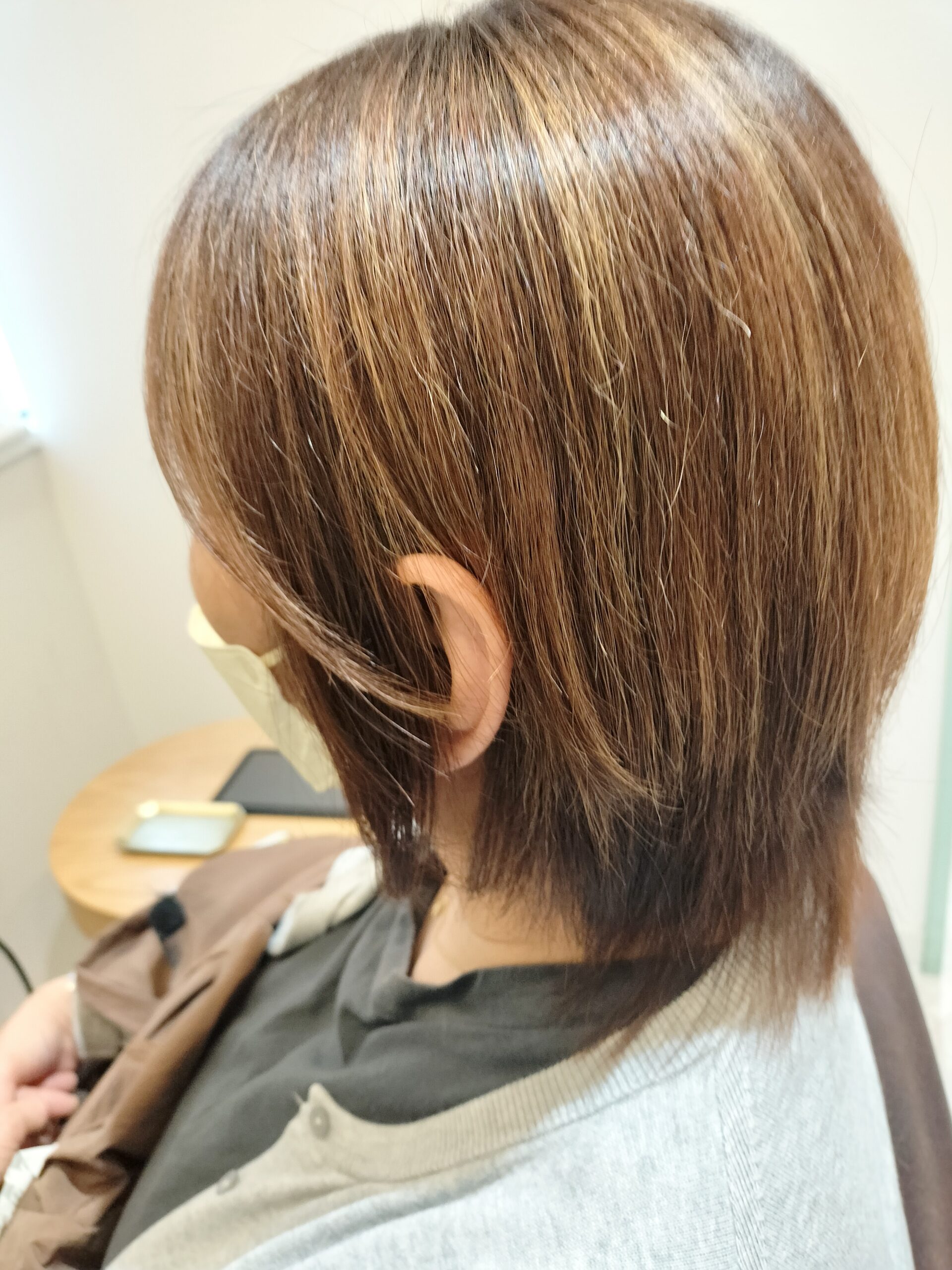 白髪が伸びてきて、全体的にツヤ感もなく、毛先は少し広がりやすい状態でした。