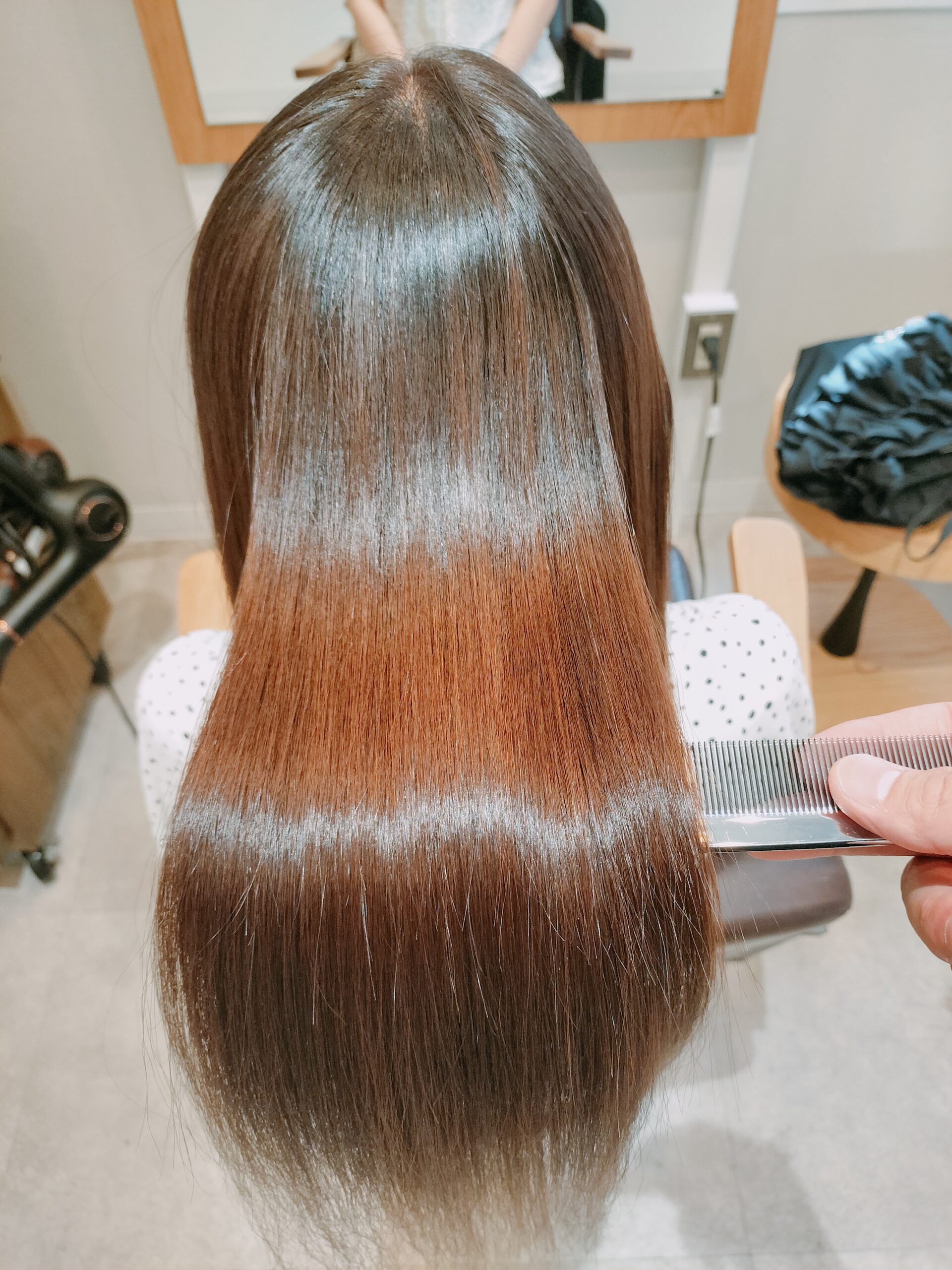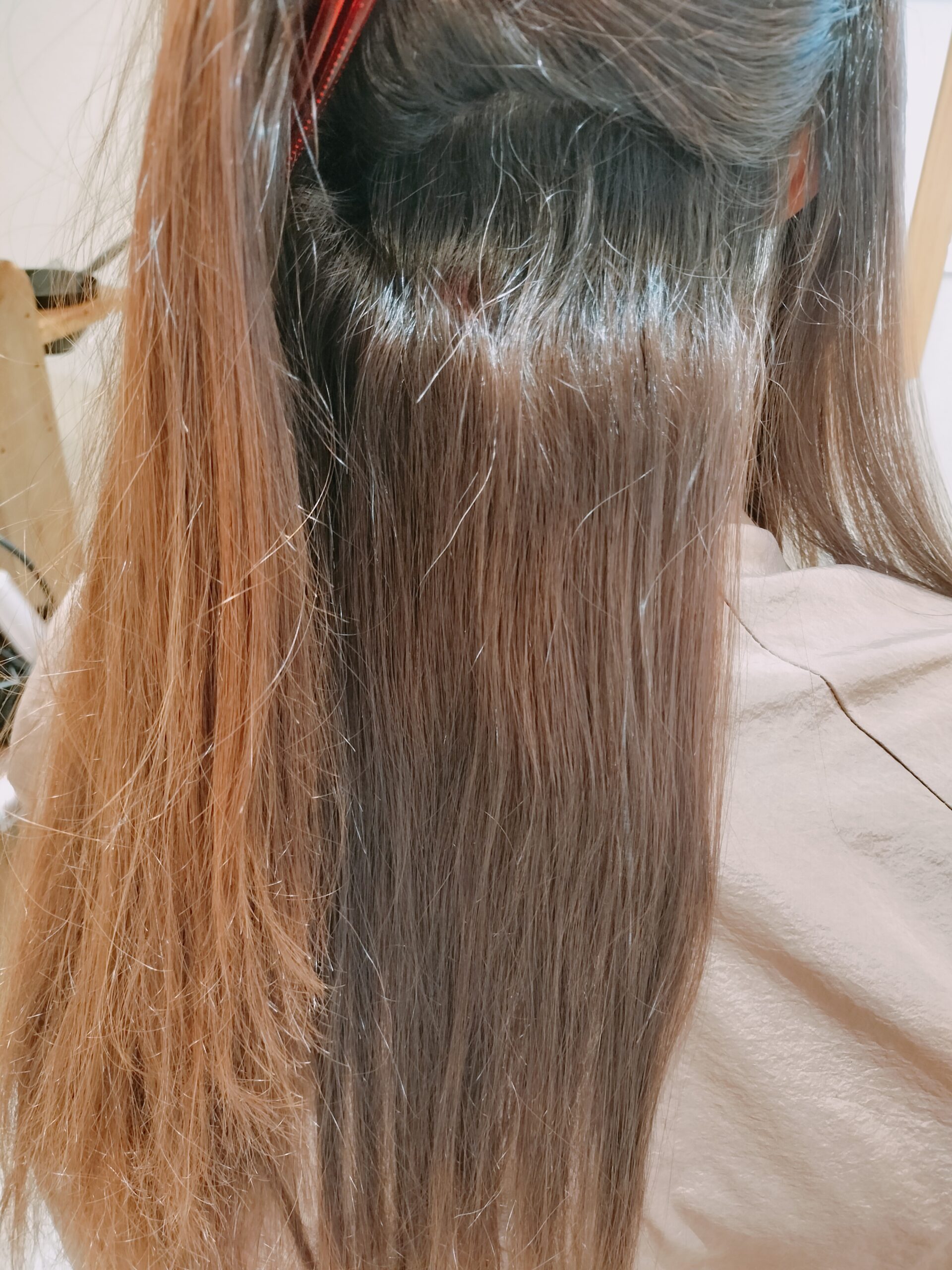 整えた状態から、髪質改善・髪修復カラーでさらに栄養補給していくと、