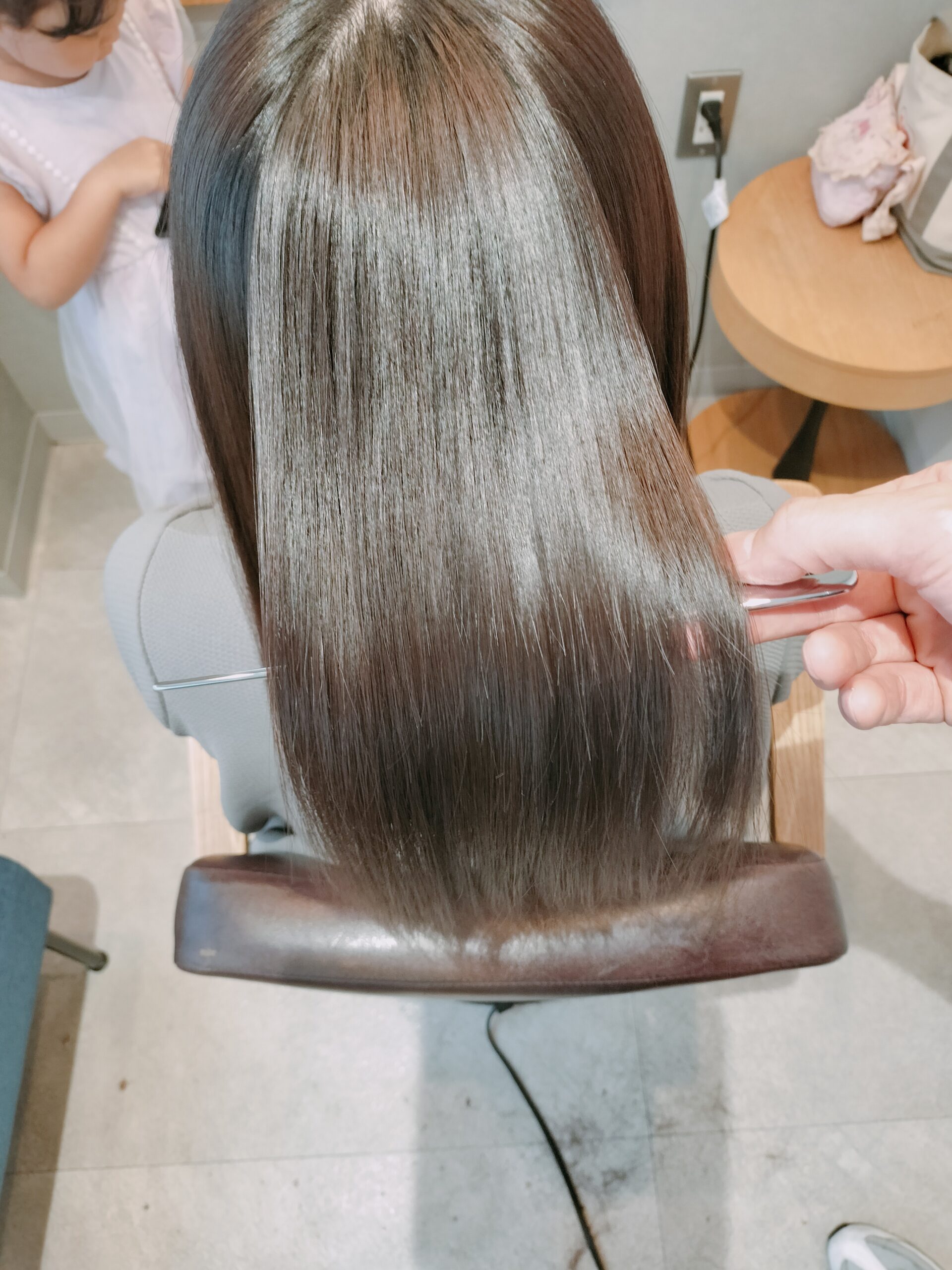 まるで「光沢加工」したかのようなツヤ感と、自然なストレート感が実現しました。