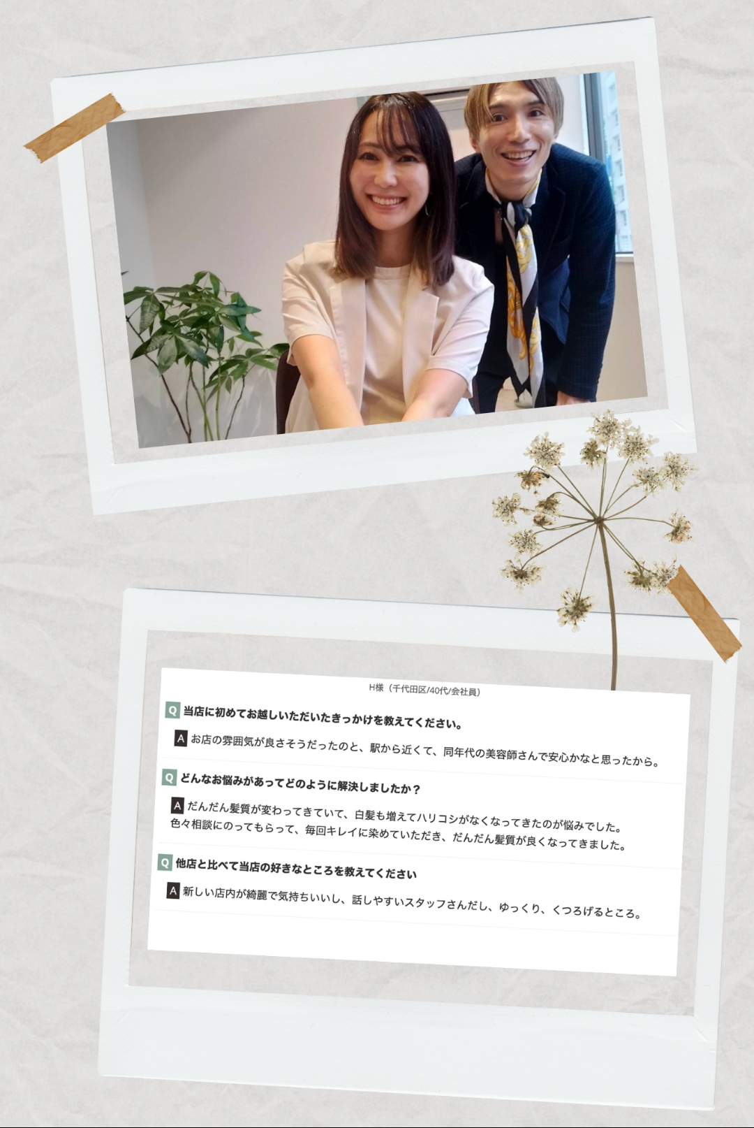 毎回しっかり相談に乗ってもらえて、だんだん髪質が良くなってきました!」