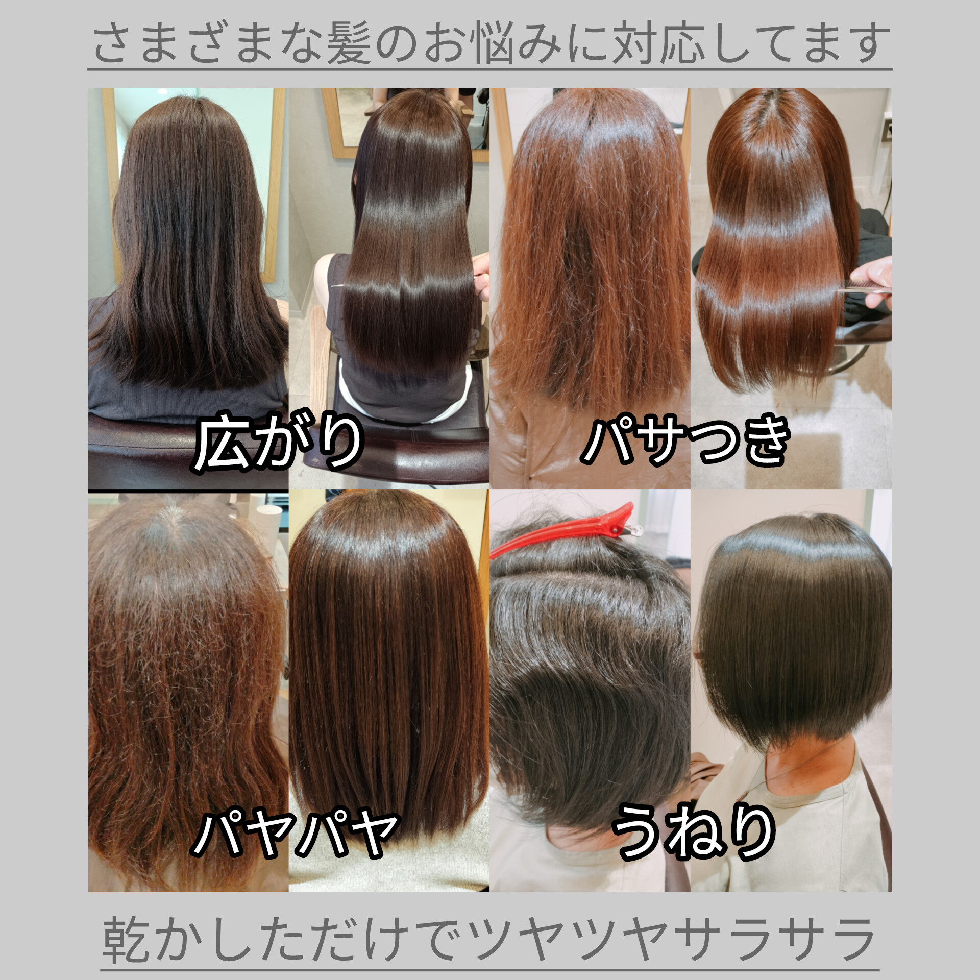 - 美髪矯正(部位に応じてコントロール、柔らかい質感をキープ)