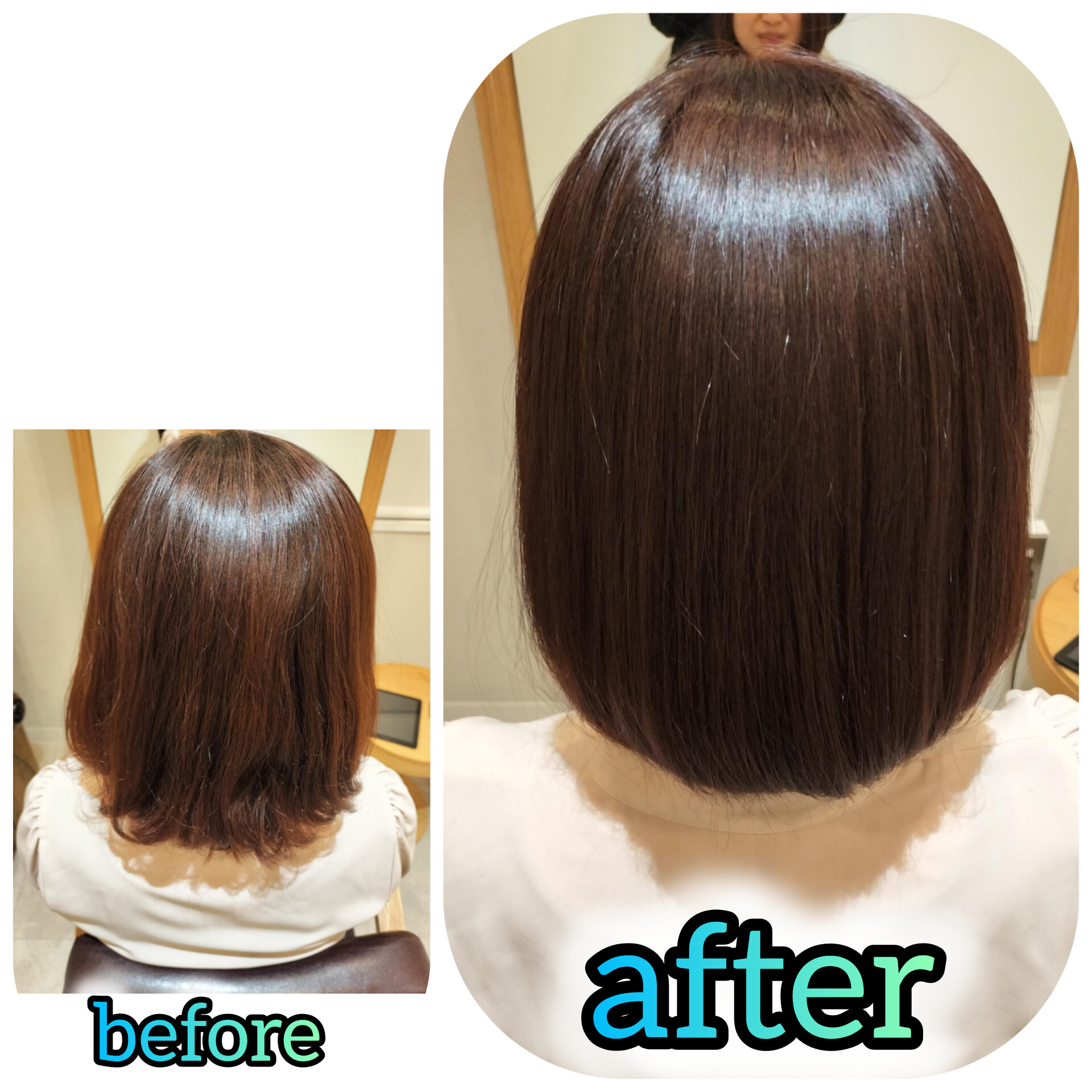 そこで今回は、髪を根本から見直すために「髪修復カラー」を選択しました。