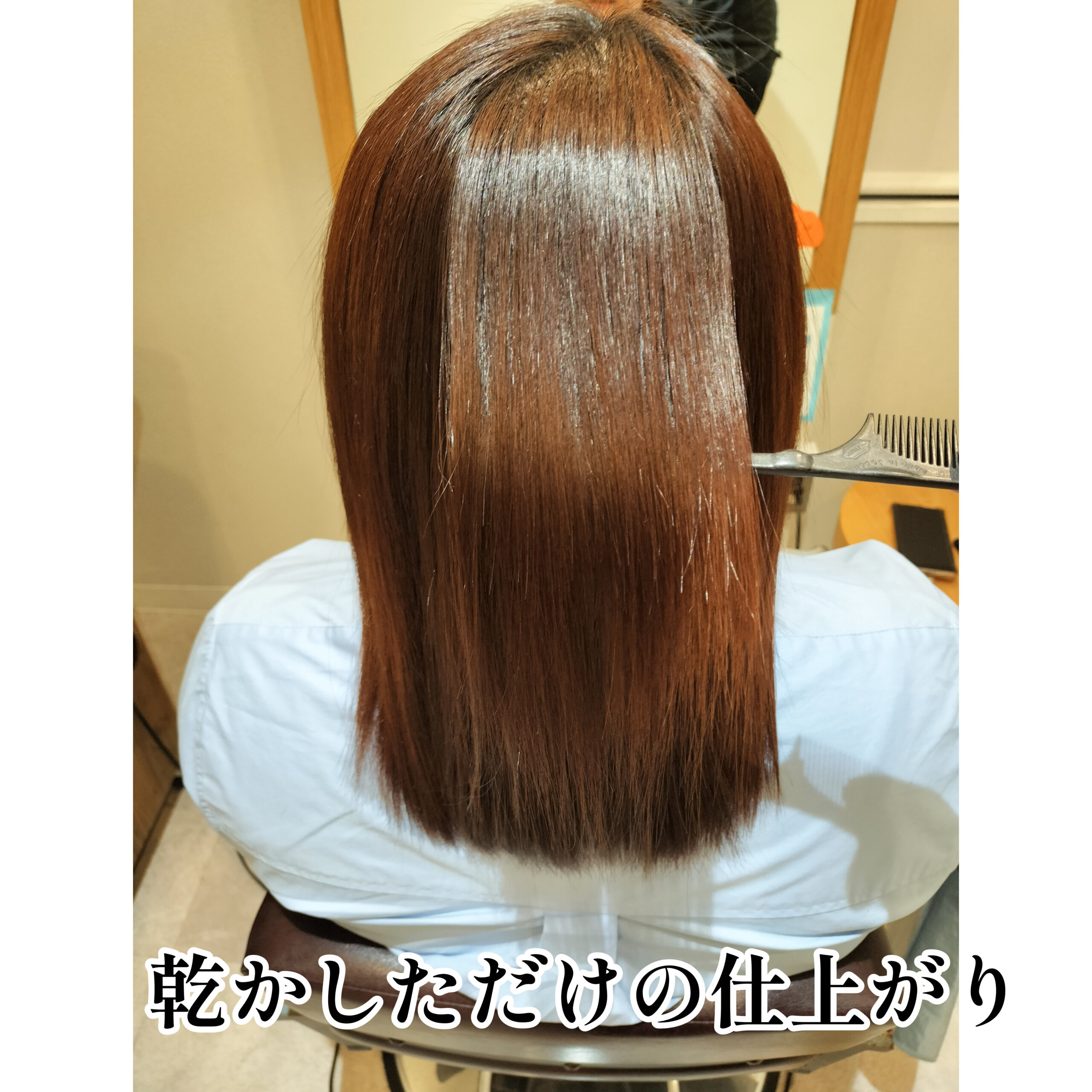 今回のお客様も、beforeの状態では根元のうねりや中間の広がりが目立ち、パサつきによる老け見えが気になっていました。