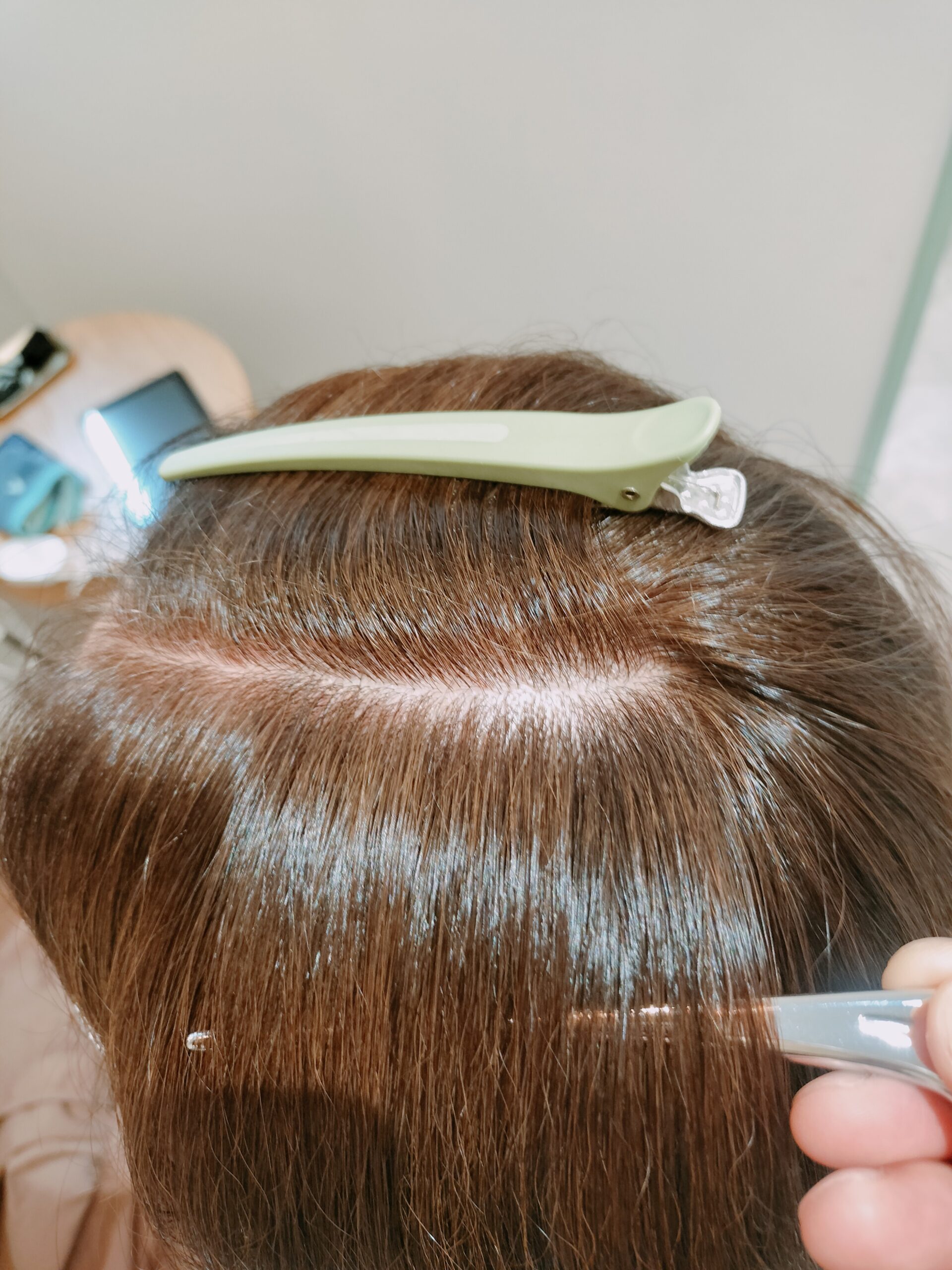 ハリ・コシ・ツヤ・潤いをプラスするために、髪修復成分をたっぷり混ぜて髪質改善効果も同時に叶えるカラーリングをしています。