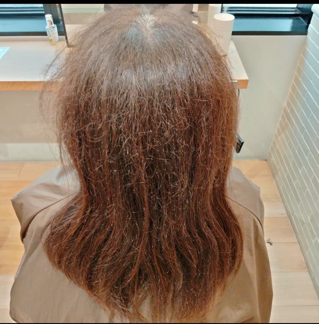 「パヤパヤ・チリチリしてまとまらない髪をなんとかしたい…」というお悩みを抱えてご来店くださいました。