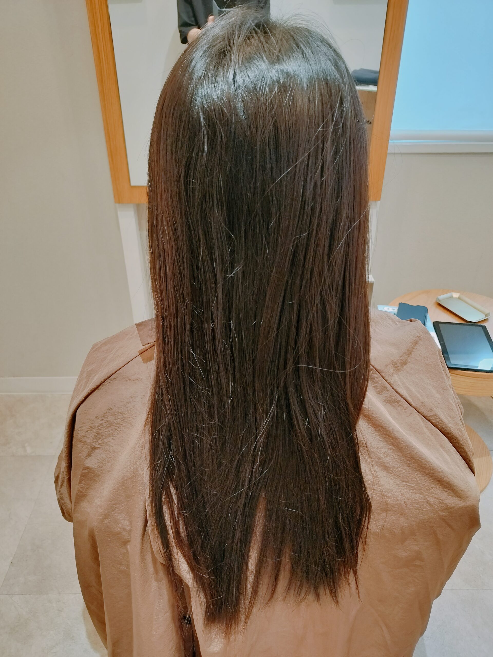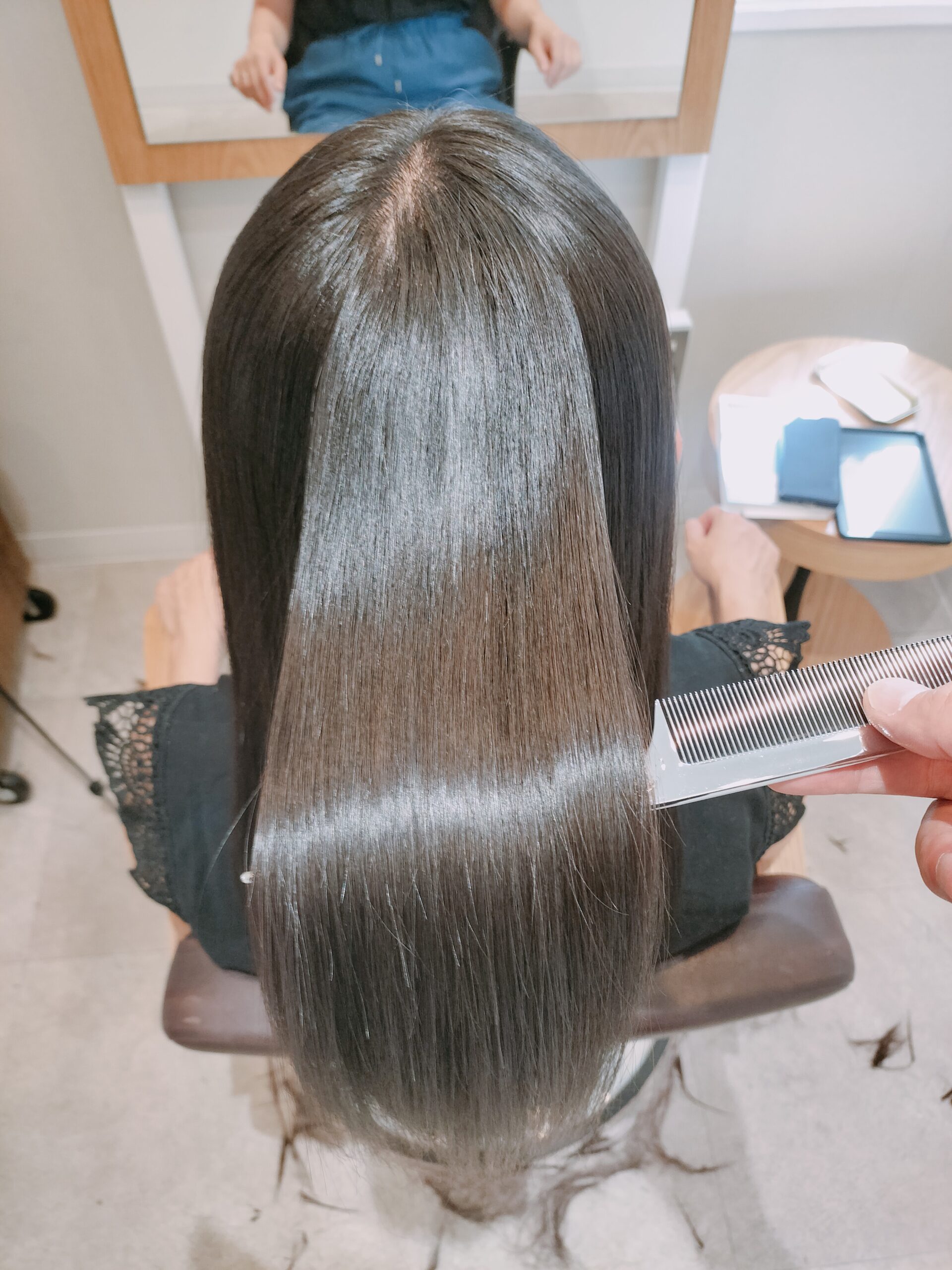 クセが残らないように、髪の芯までじっくりと薬剤を浸透させ、アイロン操作も潰さず引っ張らず、髪にストレスを与えないことを意識しました。